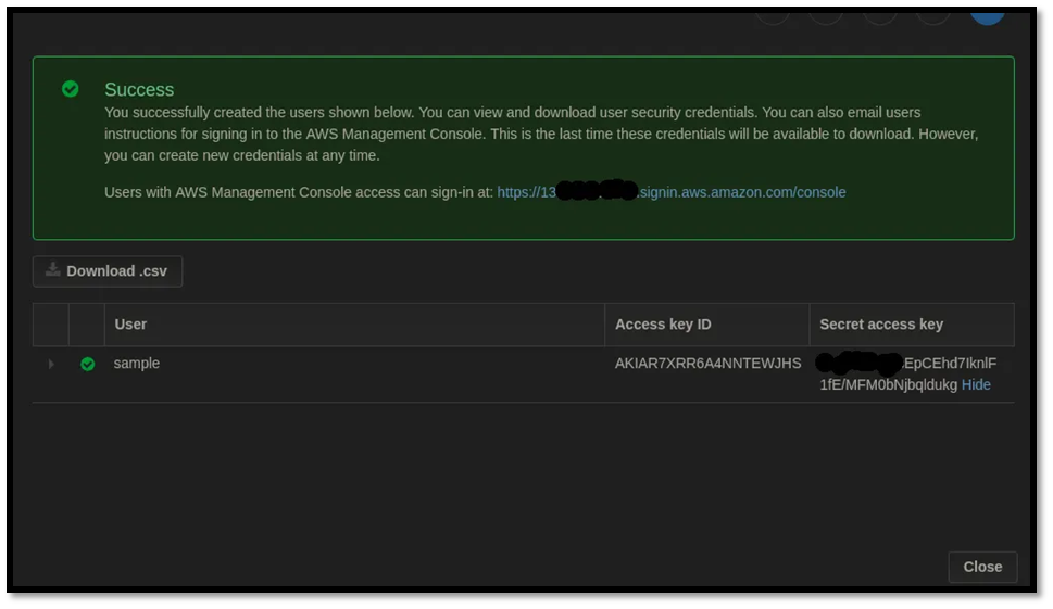 Once your two policies are ready, the next step is to assign them to a user. Instead of using an existing account, first create a fresh IAM user just for this setup. Choose Add user, enter a clear username, and under access type enable Programmatic access so the user can authenticate via API or CLI. Continue to the permissions step, choose Attach existing policies directly, then search for and select the custom policy you just created. Optionally add tags for easier management, review the summary, and create the user. On the final screen, make sure to download the .csv file that contains the access key ID and secret access key, because this is the only time the secret key will be visible to you.