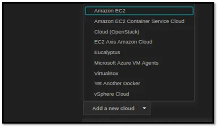 Right about now, we are halfway done. Let go back to Jenkins, click on Manage Jenkins, and click on Configure System. Scroll down till you find a drop-down: Add a New Cloud.