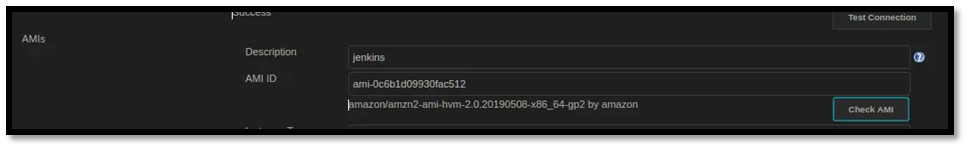 On the AMI page, give your AMI a name, copy and paste one of the free-tier AMI IDs, and click on Check AMI to be sure the AMI selected is available. You should get a response like the one below