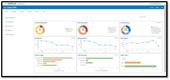 Always on encryption (TDE), data masking, and AI threat detection block breaches automatically. Compliance features include audit trails, activity monitoring via Oracle Data Safe, and regulatory patching.